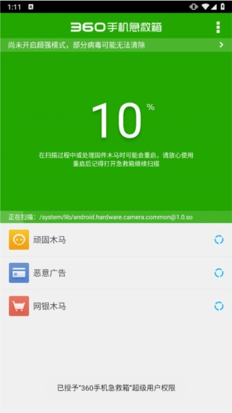 如果强力模式也无法清除病毒,建议先备份重要数据,再恢复出厂设置,之后重新用急救箱进行扫描。