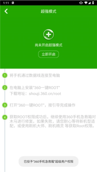 已确认设备处于ROOT状态,这是由于360急救箱的正常运行需要获取ROOT权限。