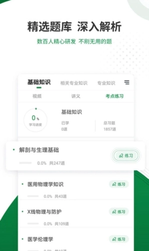 医学检验准题库不只是一款学习工具,更是医学检验专业学子迈向成功的重要桥梁。该应用凭借创新的设计思路与架构,把历年考试真题、模拟题题库、考点章节练习以及医学检验高频考点等内容有机整合,构建起一个完整且全面的备考系统。其背后的专业团队,对每一道题目都进行精心筛选,保障考生能从实战练习中积累宝贵经验。另外,视频直播课程的加入,突破了传统学习的限制,专业教师在线为考生答疑解惑,让考生在复习过程中更具信心和明确方向,是每一位力求卓越的医学检验人员必不可少的学习伙伴。