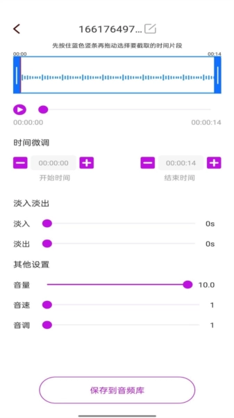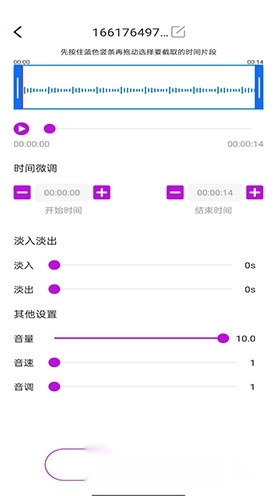 3、增加淡入淡出效果,添加音频首尾弱化功能,新增音频音量调节功能。