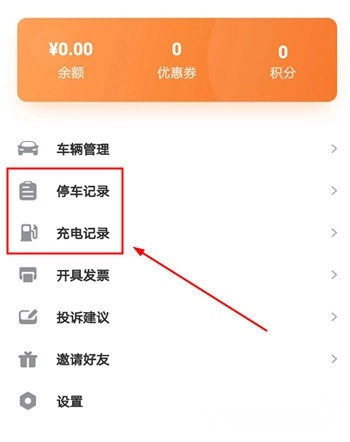 1、在美天停车软件的个人信息设置界面里,能看到“停车订单”和“充电订单”这两个功能选项,点击即可进入。