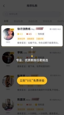 2、海量线上私教,情况看得到,你的教练你来挑。