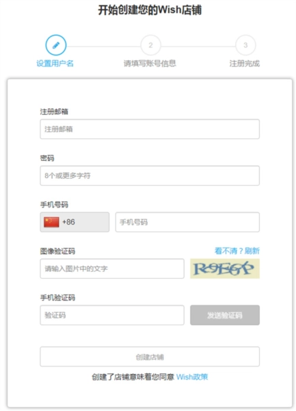 第二步:您目前在“开始创建您的Wish店铺“页面
