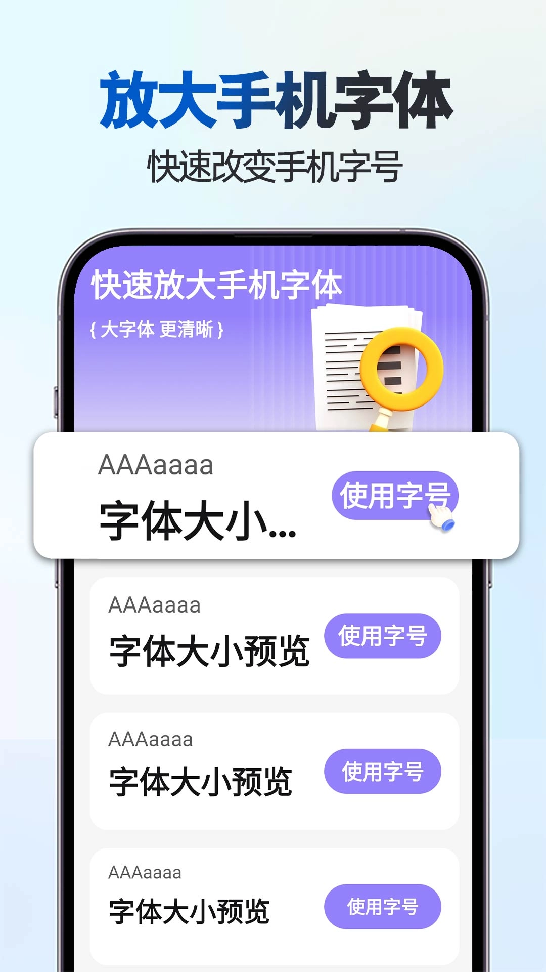 快速放大字体是一款专为用户调整字体需求设计的软件,它能轻松放大字体,让你清晰查看各类内容。软件操作极为简便,界面直观易懂,只需轻点操作,就能快速调整系统字体大小,无论是老人、视力欠佳的人群,还是偏好大字体阅读的用户,都能通过它获得超舒适的阅读体验。