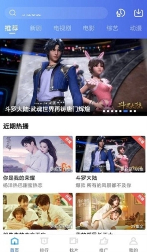 1、软件界面设计简洁明了,主界面展示着各类影视推荐内容,能帮助你轻松发现新上线的剧集和当下热门的影视作品。