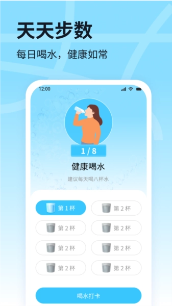 在线喝水打卡功能:该应用允许用户在线记录喝水情况,助力用户便捷补充身体所需水分。