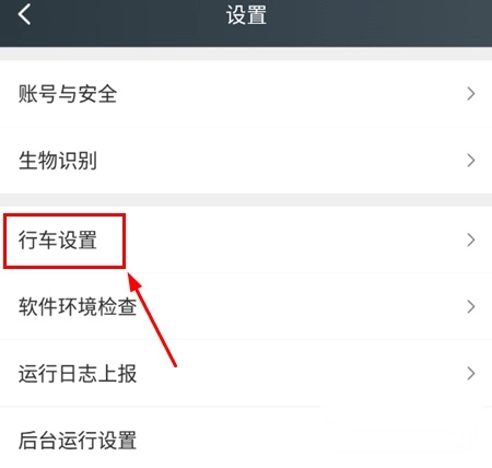 1、先进入个人信息界面,点击设置功能选项,接着在设置界面里选择行车设置。
