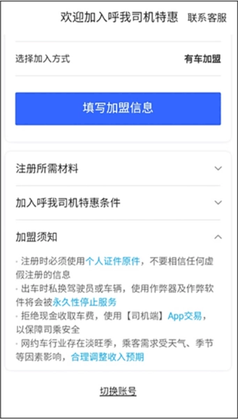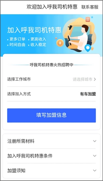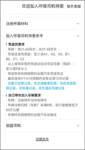 4、也能够查看加入呼我司机特惠所需的条件,判断自己是否符合要求。