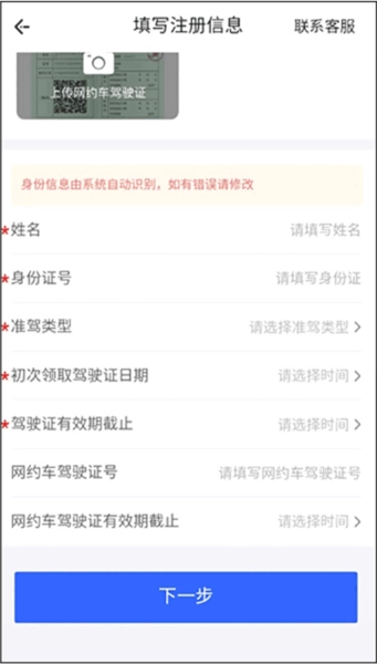 7、接着可填写个人基本信息完成注册,点击下一步填写车辆信息就能注册成功。
