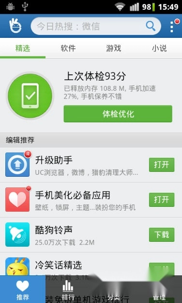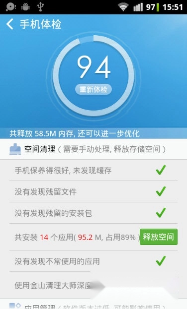金山助手具备便捷的应用管理功能,与电脑版助手搭配使用,还能进行安全大检查,让你的设备更加安全。