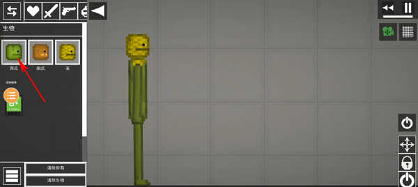 1、进入游戏后,第一步要创建一个生物人。在游戏界面左上角找到爱心图标并点击,接着从西瓜、南瓜、玉这几个选项中挑选一个作为生物人。
