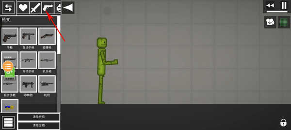 4、胳膊停住在空中停住之后,我们需要在左上角选择枪械图标去选择枪械;
