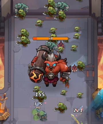 Boss牛魔王会在第4波出现,此时阵容还未真正成型,面对如潮水般涌来的怪物,对阵容单体、群体输出要求较高,需要搭配出远近兼具输出能力的合适阵容。