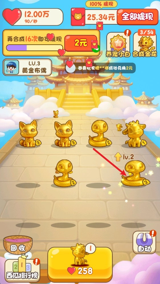 4、右下角还有自动合成可以开启,这样生成了小动物后,它就能帮助你快速进行合成了。