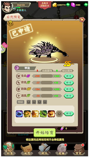 3、点击右侧最下方的培养按钮。在此处,能看到恐龙初始的属性成长情况。当手中持有足够数量的恐龙碎片,便能够对恐龙展开培养,培养后恐龙的各项属性会有不同程度的提升。不过在此要提醒各位,培养过程中恐龙的部分数值有可能出现小幅度下降。若想确保每次培养属性都能提升,就需要借助稀有的固魂草来安抚恐龙,稳定其心情。