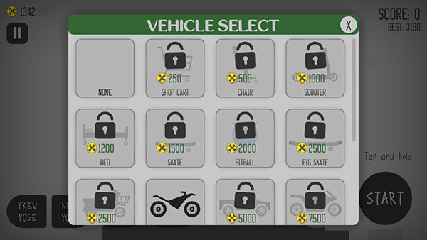 至于BUG就是那三个螺旋桨的地图,让小人坐在购物车里面,蓄力让购物车前进,被第一个螺旋桨击中,会让小人的肢体卡在购物篮里,然后不停骨折,但是不太稳定,小人挣扎的时候,会翻跟斗让购物车甩飞,实验了几百次,大概只有十几次会让小人不停得挣扎,最少会得十几万分,运气好会得五十万以上。
