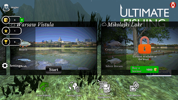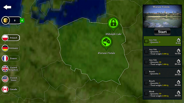 9、在首页点击“Free Fishing”可以选择钓鱼场景,后面的场景需要金币可进行解锁。