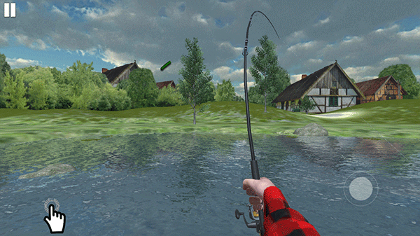 2、游戏中自由控制钓竿钓鱼动作,成功钓到游戏中的小鱼。