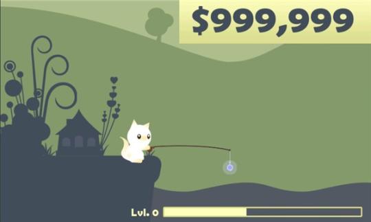 2、长按屏幕,控制小猫的鱼竿,选择合适的力度进行抛出;