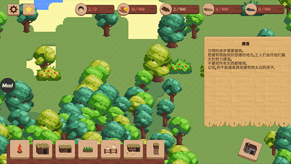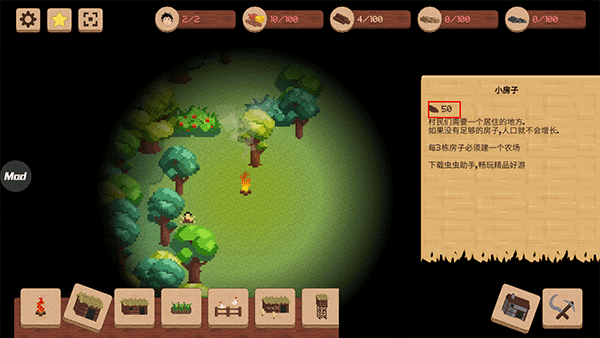居民居住之处,房屋数量越多,租金便越低。每修建3座房子,就能建造一座农场。要是资源不足,还能够前往森林中采集。