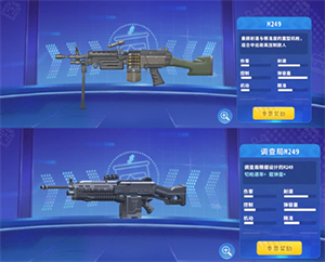 除了传统形态的M249外,你还可以通过改装、涂装等方式,为自己的爱枪提升更多功能!目前有三款枪皮,分别是:爆震/信条-狂/荣耀M249。
