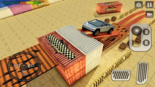 1、玩家在游戏中需要驾车越过重重障碍,并将车辆停在指定的位置通关