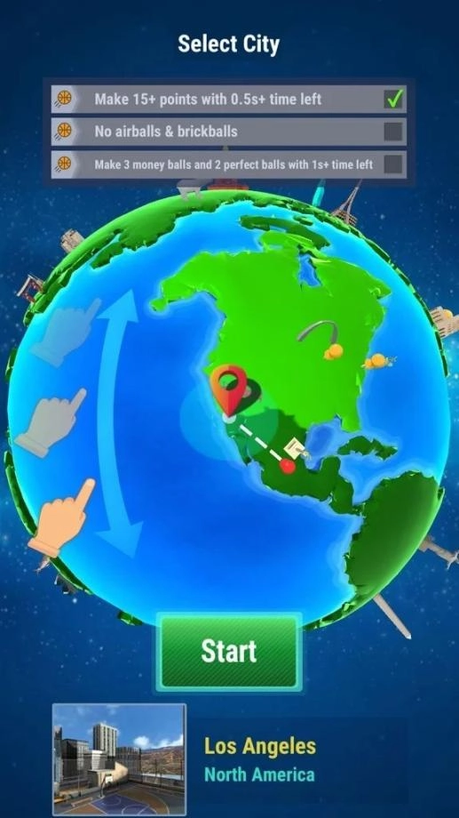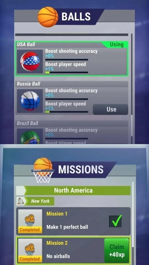 3、游戏采用逼真的绘画风格设计,以经典篮球为游戏主题。