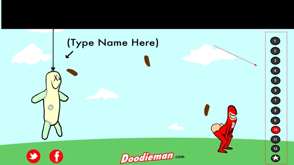 大便超人官方正版是一款极具恶搞风格的休闲小游戏。这款游戏从PC端移植而来,整体采用动画卡通的画风进行绘制。在游戏里,玩家会化身成为大便超人,以大便作为武器。玩家能够在左侧人偶上写下自己讨厌之人的名字,接着点击右侧的11个按钮,此时大便超人便会施展不同的招式去攻击人偶,像飞天、旋转、大便手雷等招式都有。