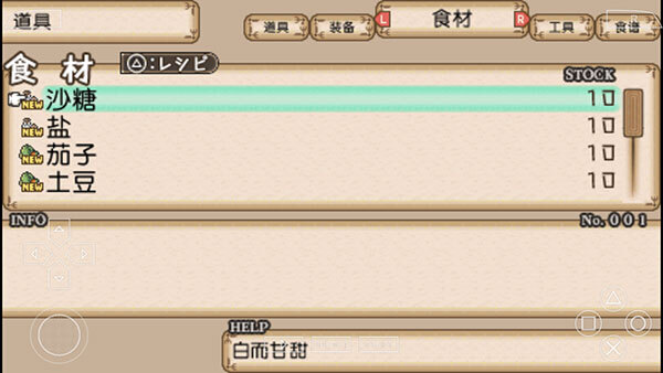 在本作里,战斗的意义在于获取烹饪所需素材,战斗系统亮点寥寥。战斗发生在3×5的格子场地,我方仅能派出3人,而敌人最多可达6只。攻击顺序取决于角色的AGI数值,下方的行动顺序槽会展示敌我双方的行动先后顺序。