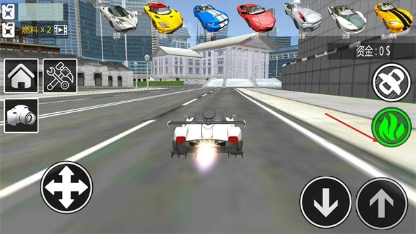 2、点击右侧的火焰按钮狂热有瞬间加速,让玩家的赛车在赛道上极速狂飙。