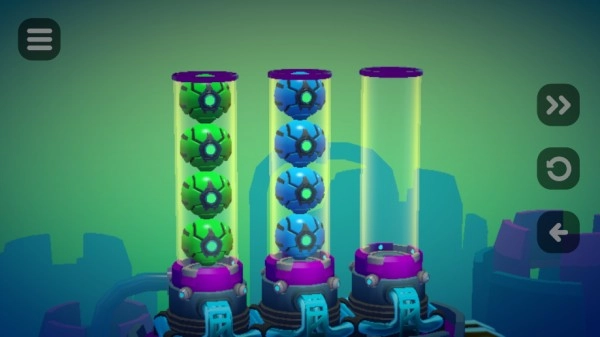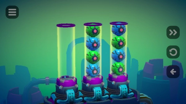 15、点击之后会进入小游戏,我们需要将颜色相同的球体放在同一圆柱体中(每一关都会有不同的小游戏)