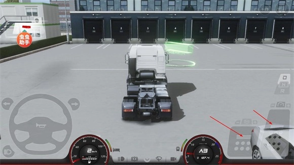 10、想要开始拉货就需要先将卡车开到货物所在地点,地点会用绿色箭头标识,靠近后就能连接货物开始任务。