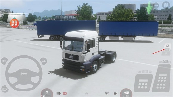 2、启动引擎后需要将屏幕下方的停车制动器给关闭,不然无法让卡车前进。