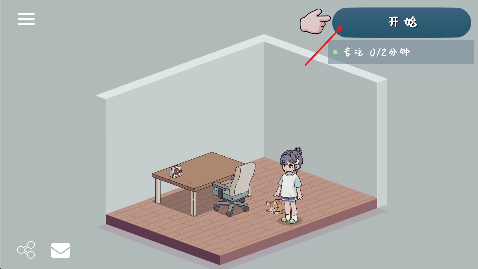 4、在倒计时后,我们就会进入到专注时间,听着游戏中舒缓的音乐,开始你的专注项目吧!