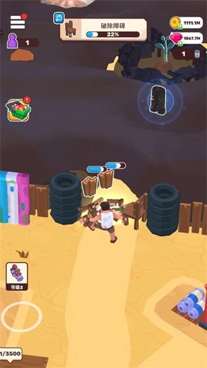 2、当遇到障碍物后角色会自动拿出吸尘器来吸收这些沙尘。