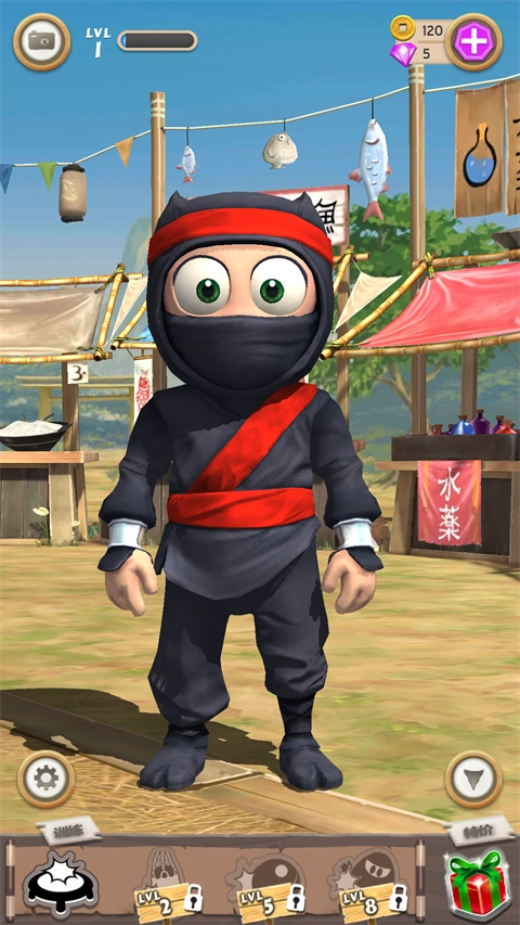 自定义Clumsy Ninja的套装、腰带和头带来匹配你的风格。拍下你的忍者最疯狂绝技的照片。保持警惕:有很多惊喜在等着你!