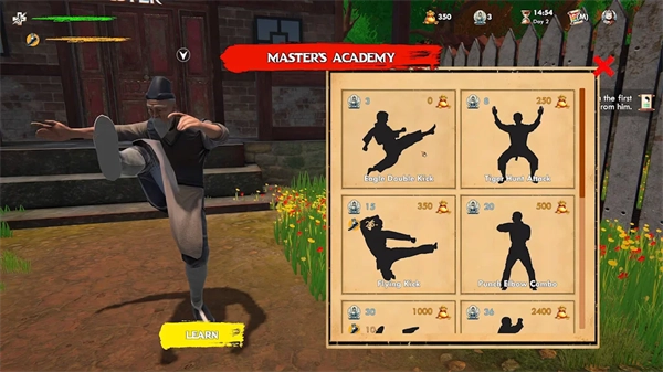 3、借助收取学费以及参与竞技赛的方式来获取资金,进而亲身感受第一人称视角下的武术战斗。