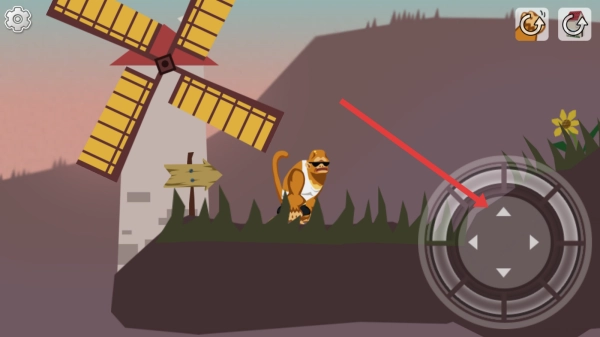1、控制虚拟的摇杆控制猩猩移动,遇到坡或者坑提前调整方向,长按跳键越障碍,利用长手臂抓高处。