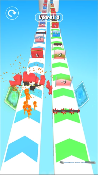 3、需要通过带+数字的能量布来增加人数,用来撞开带数字的障碍,每种不同的障碍会消耗对应数字的小人;