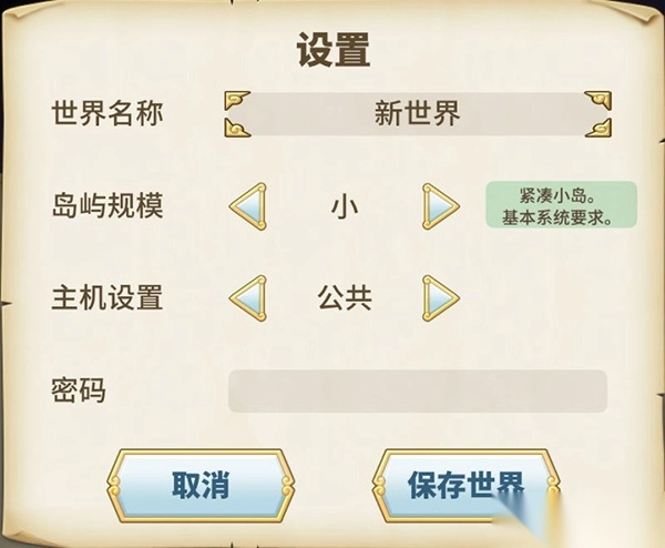 9、点击创建,可以为自己的房间起一个响亮的名称,调整岛屿的大小,设置自己的房间是否公开或仅对好友公开。