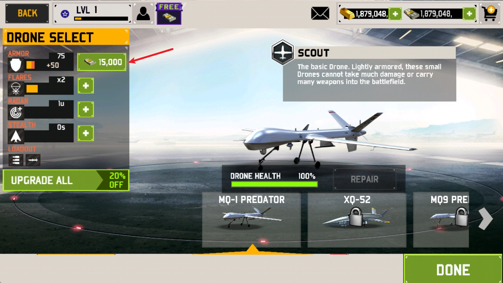 3、消耗货币对无人机的属性进行升级,通过提升各项属性,增强无人机的整体战斗力。
