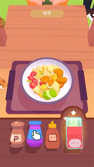 4、最后加入少许调味剂,这样美食就制作完成啦。接着将做好的食物端给顾客品尝,就能获取奖励哦!