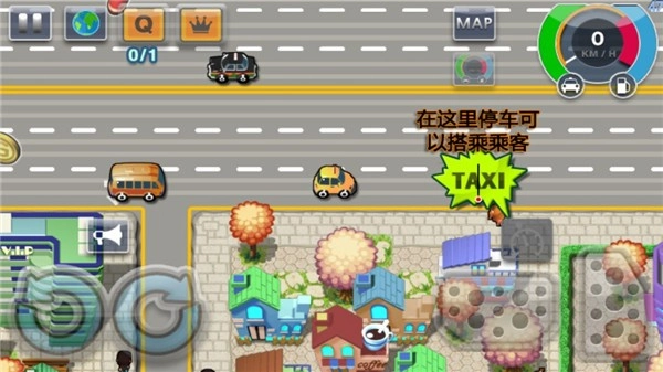 4、当抵达指定位置时,需按下减速按钮,与此同时,左边的两个按键能够对出租车的方向进行控制。