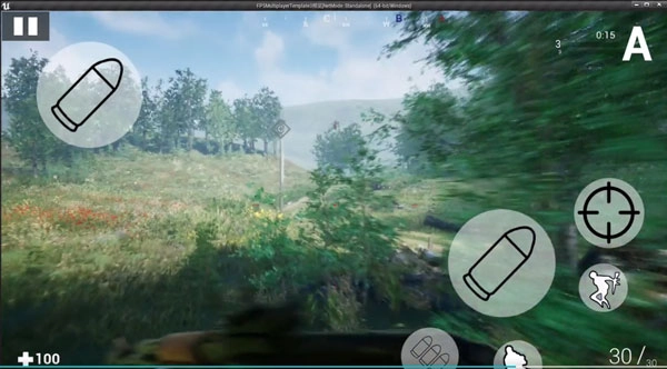 3、游戏内如图,左边控制移动,右边控制瞄准射击;