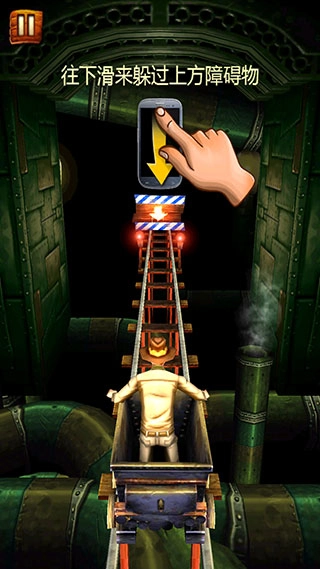 1. 玩家登上矿车,于矿洞之中一边收集宝藏,一边躲避障碍物,持续不断地向前行进。