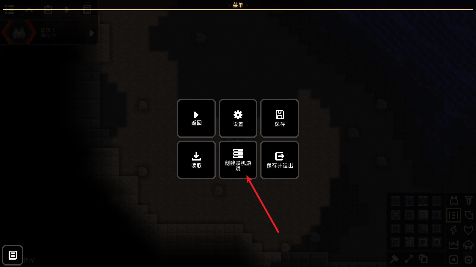 2、随后我们便能进入游戏,点击游戏界面左上角的菜单,接着点击其中的创建联机游戏选项。