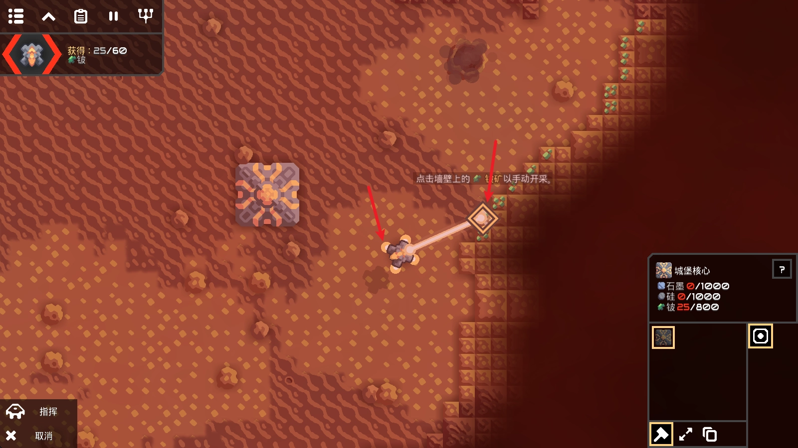 2. 在游戏里,我们能够操控核心开展采矿活动。