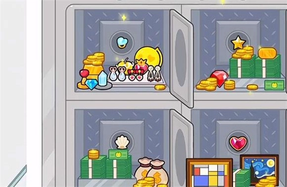 4、前往银行三楼,开启四个保险柜,把贝壳、五角星、戒指以及爱心妥善放置,如此便能打开隐藏的大门。随后点击墙壁上的画,会出现一个拉杆,点击该拉杆,即可打开金库并解锁新的区域。