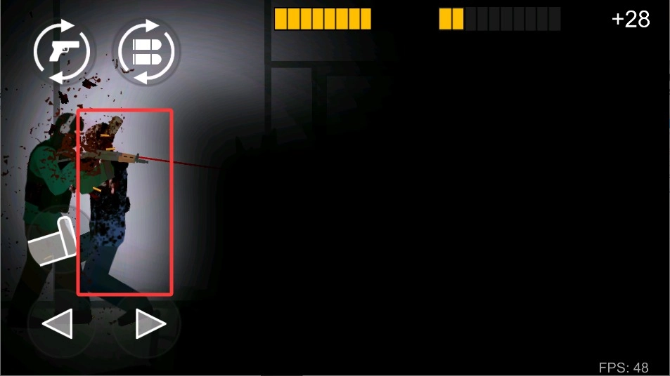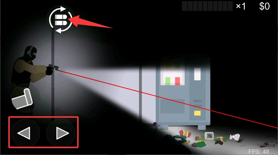 3、用左手滑动屏幕,操控人物跑位躲避僵尸,右手要时刻准备点击换弹,要是子弹打光了可就麻烦了,只有保证弹匣始终充足,才能实现持续输出。