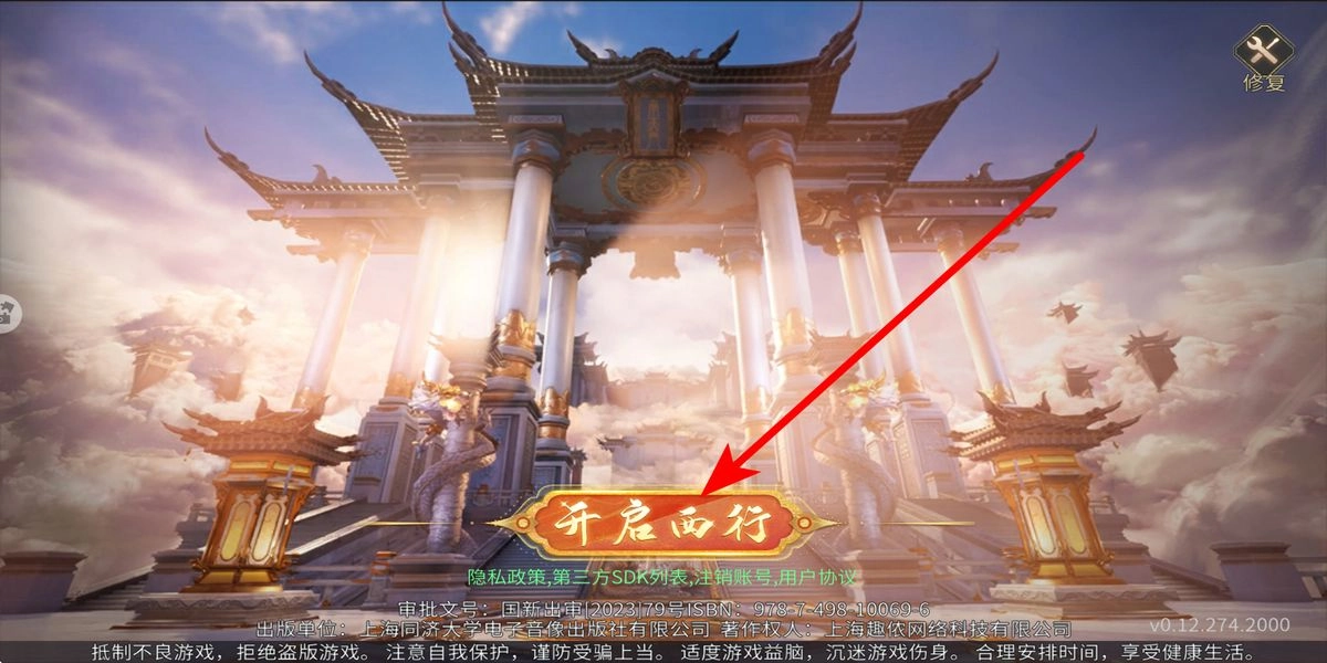 1. 开启游戏,在界面上点击“西行”按钮,随即进入游戏初始流程。此步骤乃踏入暗黑西游世界的起始点,后续的冒险之旅将以此为开端,循序渐进地展开。